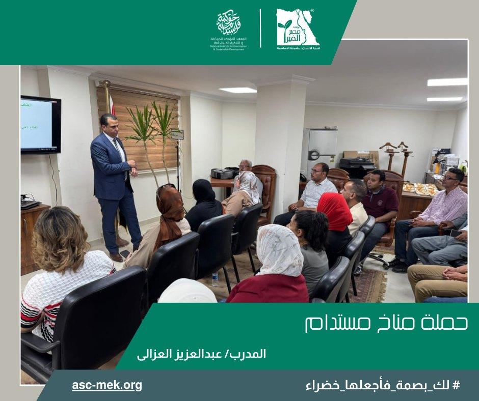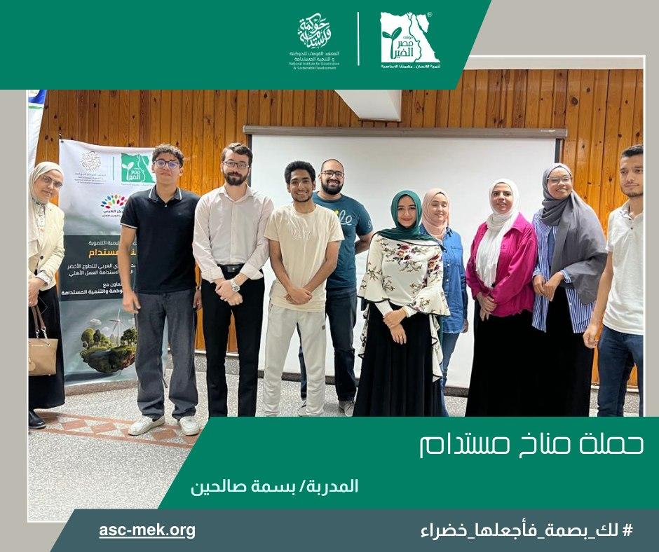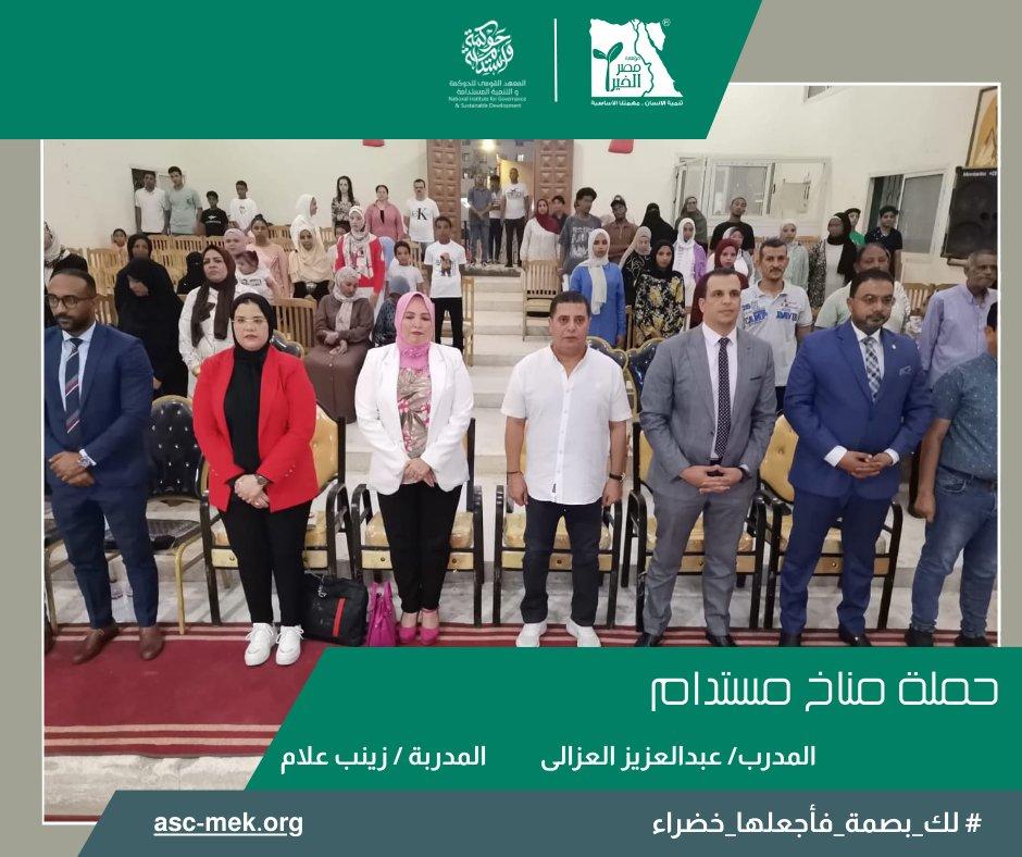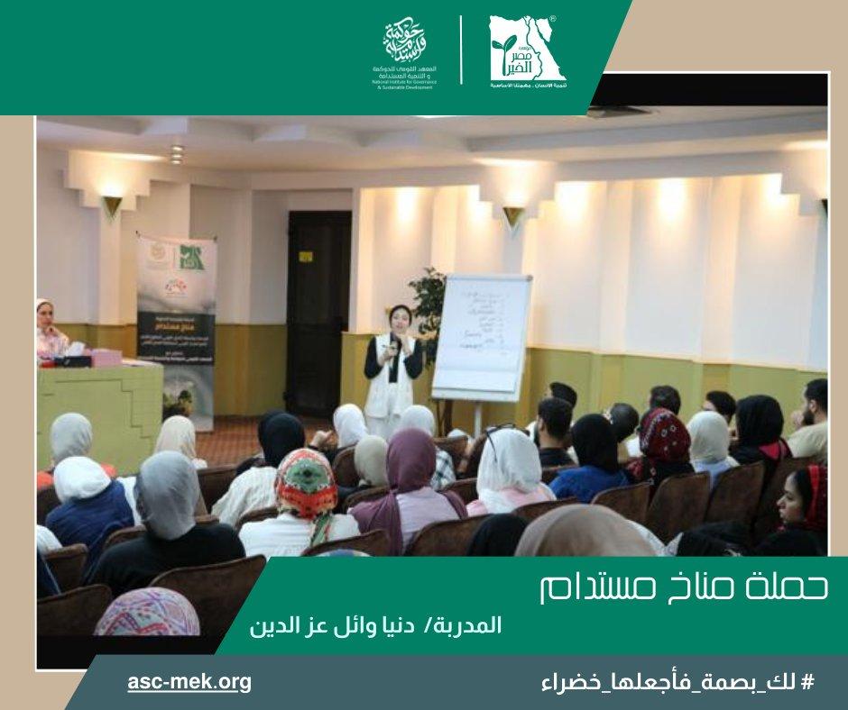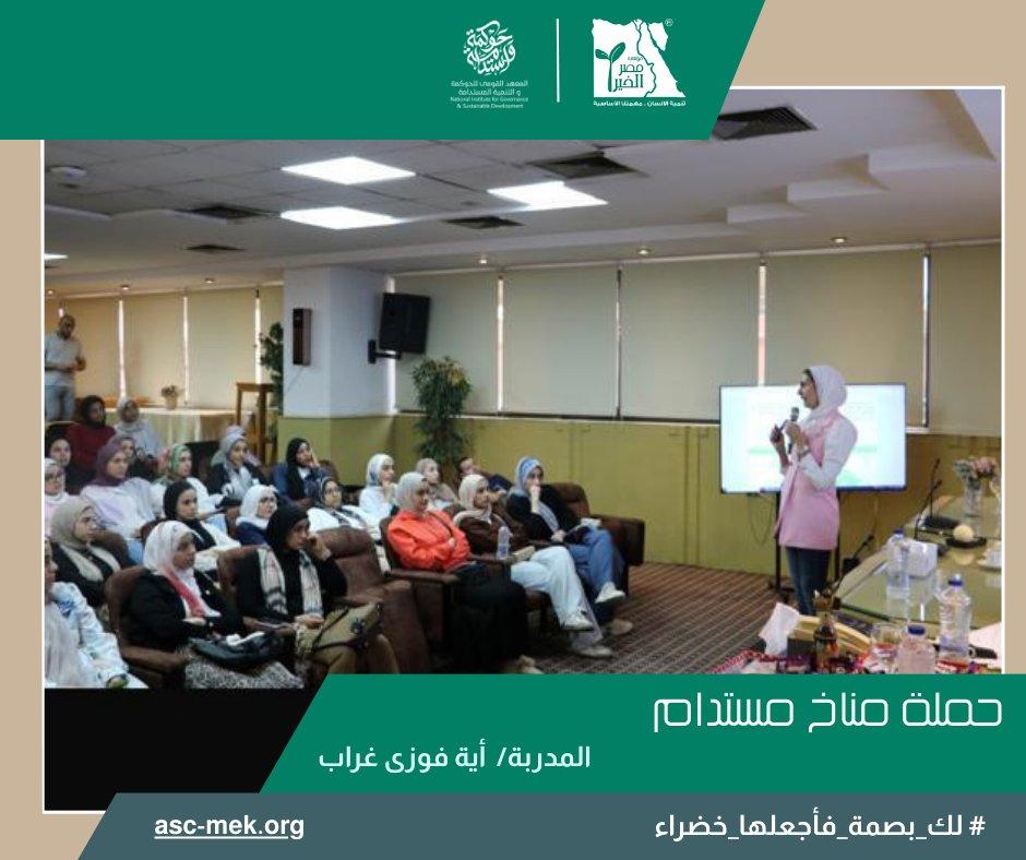 في إطار الحملة الإقليمية "مناخ مستدام"، المنفذة بواسطة المركز العربي لاستدامة العمل الأهلي بمؤسسة مصر الخير، وبالتعاون مع المعهد القومي للحوكمة والتنمية المستدامة من خلال مبادرته الرائدة "كن سفيراً"، تم تنفيذ 20 ورشة تدريبية وتوعوية، شارك فيها نحو 500 مشارك من مختلف الفئات.